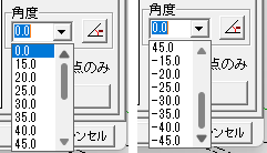 角度は「0,15,20,25,30,35,40,45,-15,-20,-25,-30,-35,-40,-45」から選択できます。