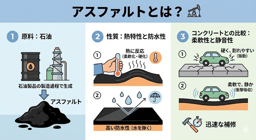 この記事では、若手技術者がまず押さえておくべきアスファルトの基礎知識を、現場の視点から具体的に解説します。